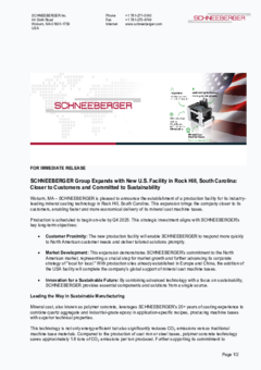 SCHNEEBERGER Group Expands with New U.S. Facility in Rock Hill, South Carolina: Closer to Customers and Committed to SustainabilityDownload now